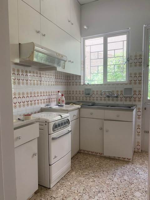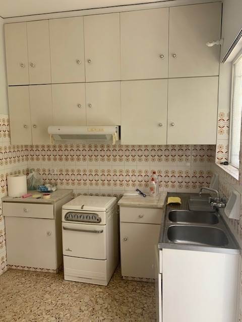 διαμέρισμα,54 τ.μ.υπερυψωμένο ισόγειο,διαμπερές,καρασκευής 1980,καλή κατάσταση,θέρμανση αυτόνομη πετρέλαιο,κουφώματα αλουμινίου με μονά τζάμια,δάπεδα παρκέ-μάρμαρα,πόρτα Ασφαλείας,θυροτηλεόραση,αποτελείται από ανεξάρτητη φωτεινή κουζίνα,άνετο υπνοδωμάτιο,σαλόνι,και λουτρό,κοντά σε αγορά,σχολεία,συγκοινωνίες,πλατεία