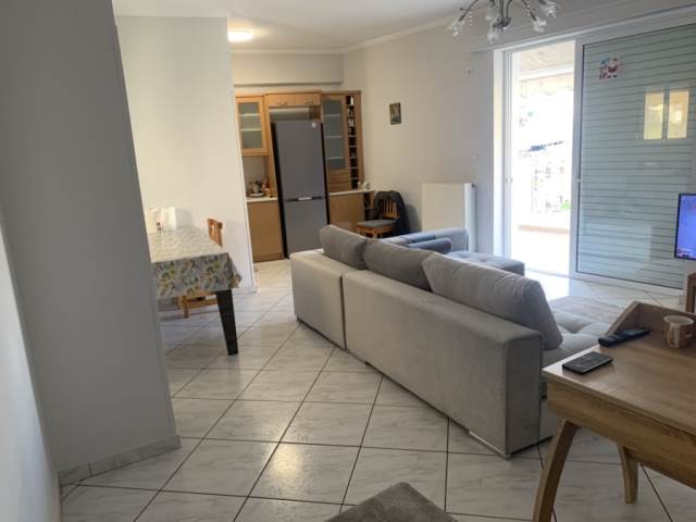 διαμέρισμα 83τμ,4ου ορόφου,διαμπερές,κατασκευής 2001,άριστη κατάσταση,πάρκινγκ,τζάκι,πανοραμική θέα,ηλιακός,βεράντες,τέντες,αυτόνομη θέρμανση πετρελαίου,δίδετε επιπλωμένο και με ηλεκτρικές συσκευές,αποτελείται από κουζίνα,σαλόνι,λουτρό και 2 υπμνοδωμάτια,κοντά σε αγορά,σχολεία,γήπεδο,συγκοινωνίες